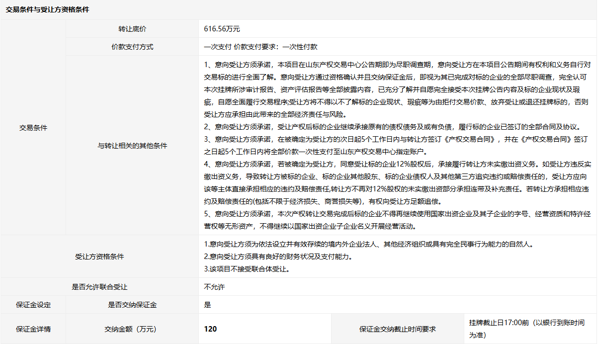 煙臺市景新置業(yè)有限公司50%國有股權