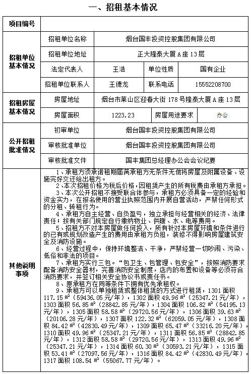 芝罘區(qū)北馬路240號(hào)大樓部分1層及2-3層招租交易公告