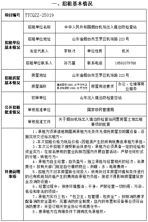 煙臺市芝罘區(qū)機場路223號房地產(chǎn)招租公告